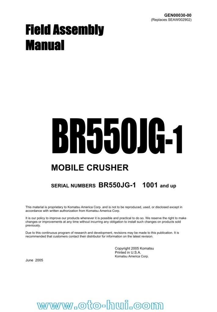 Title:KOMATSU Jaw Crusher BR550JG-1 - Field Assemble manual (Series 1001 Up)