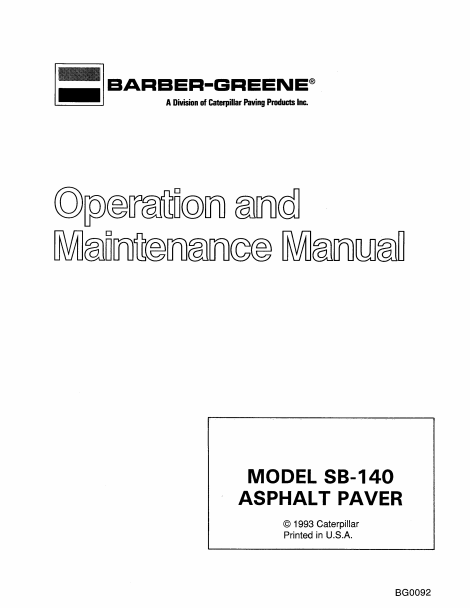 Barber-Greene SB140 Operation and Maintenance Manual