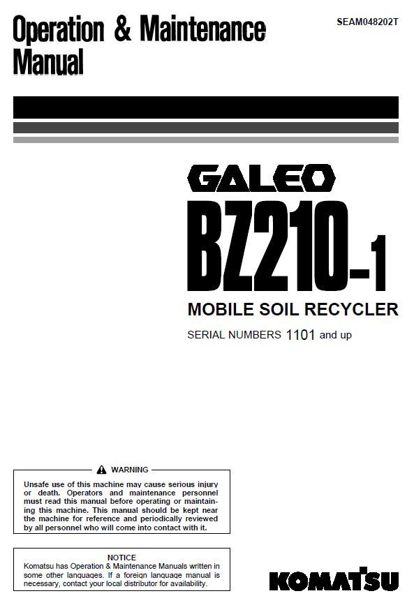Komatsu BZ210-1 Operation and Maintenance manual SEAM048202T.txt 0331 bytes · Xem: 30
