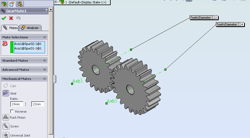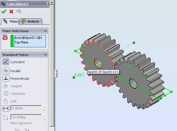 Cuối cùng: vẫn dùng công cụ Mate, click vào nhãn Advanced Mates, chọn Gear.