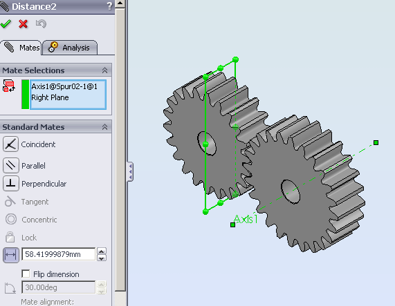 1. Trong trường Mate Selections: chọn hai bề mặt trụ của hai bánh răng.