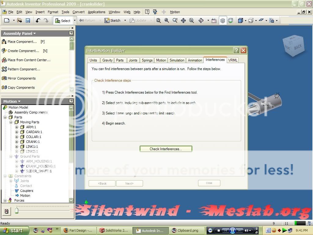 - Chọn Tab Interferences => Chọn Check Interfercens để kiểm tra sự giao nhau giữa các khâu.