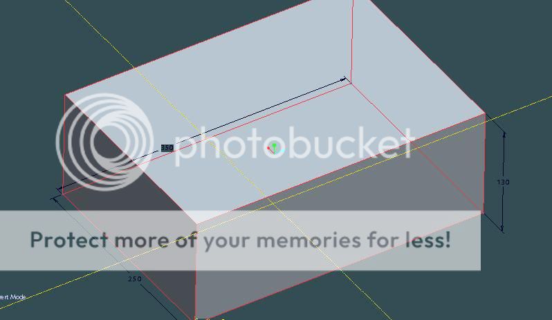 đầu tiên ta sẽ vễ 1 chiet tiết với các kích thước dài 350mm, rông 250 và cao 130.