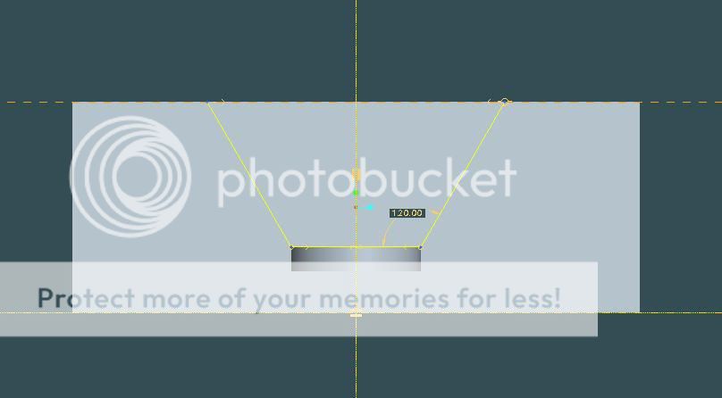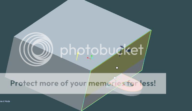 tạo 1 mặt phẳng cách mặt đáy 33mm và tạo 1 cái tai ở cạnh bên với các kích thước