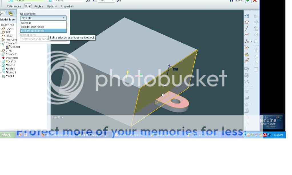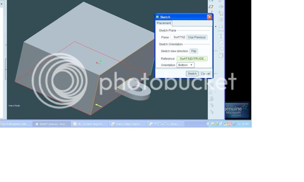 vấn đề ở đây là trên chi tiết có 1 cái tai và việc phân khuôn là không hề dễ dàng . chúng ta phải tạo ra mặt phân khuôn ở chân tai và phải tạo Draft ở chân tai. chúng ta sẽ làm như sau: