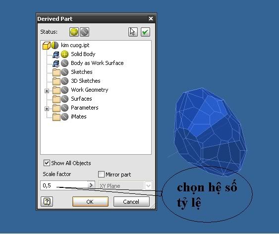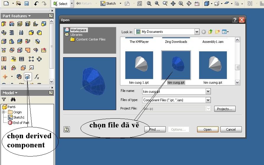 Dùng lệnh Derived Component trên thanh Panel bar và mơ file kim cương đã vẽ theo cách của bác Tuấn.